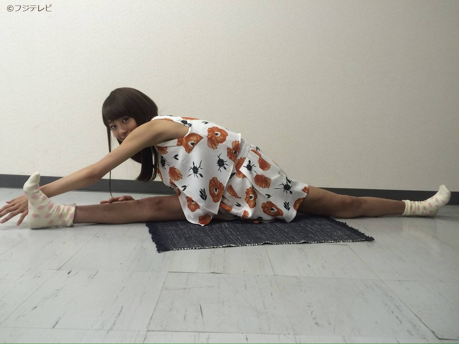 先日も、『めざましテレビ』の公式Twitter上で、両足を左右に伸ばして上半身を床にペタリとくっつけた見事な開脚姿を披露して話題となり、着実に知名度を上げている。